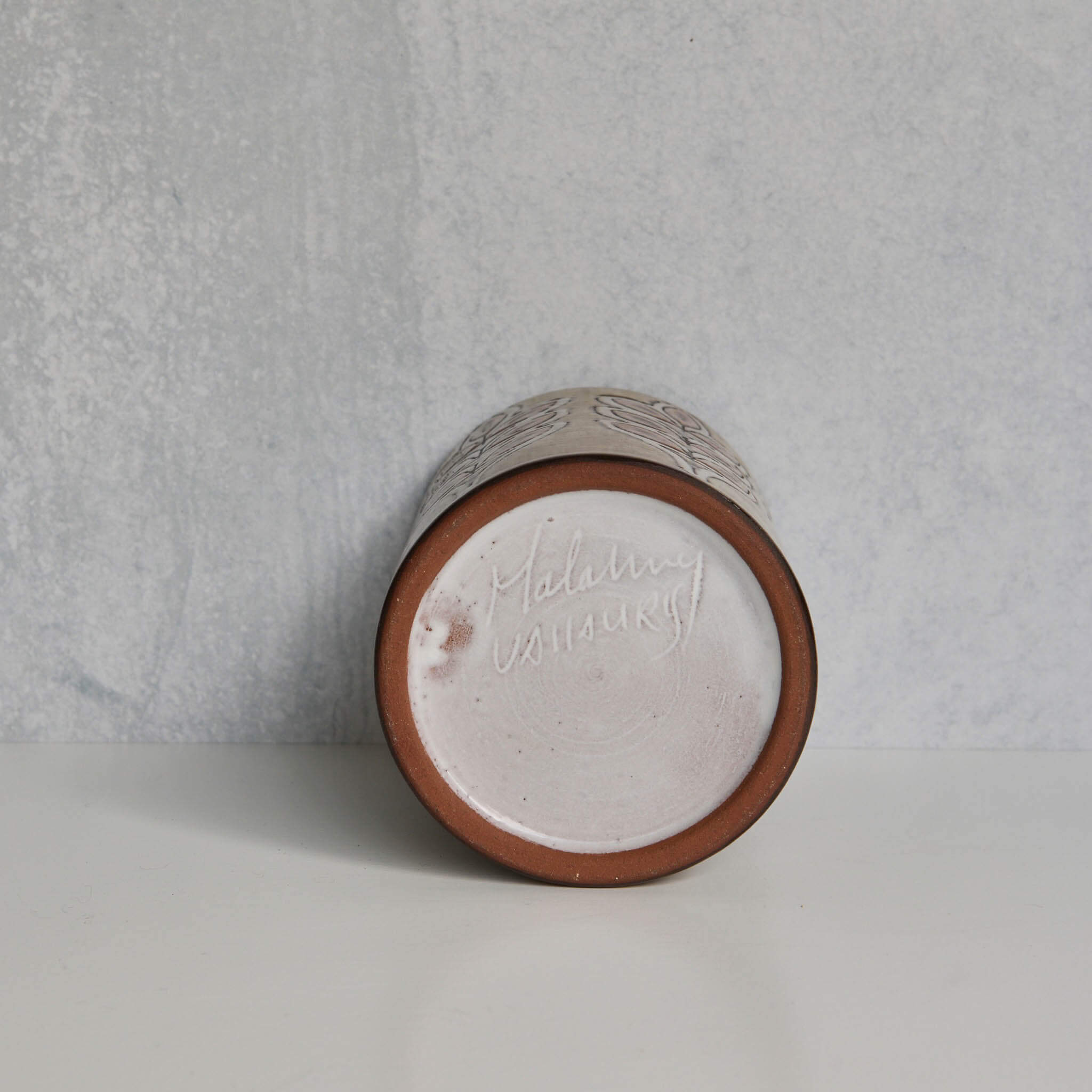 Jean-Claude Malarmey (1932-1992) was a French studio potter who was part of a community of artists in Vallauris, France. He opened his own workshop in the late 1950s. His work is wheel thrown and hand painted. Mid-century modern with organic restraint.